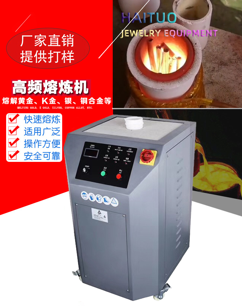 本機采用大功率中頻電源加熱方式熔煉鉑/鈀金等。